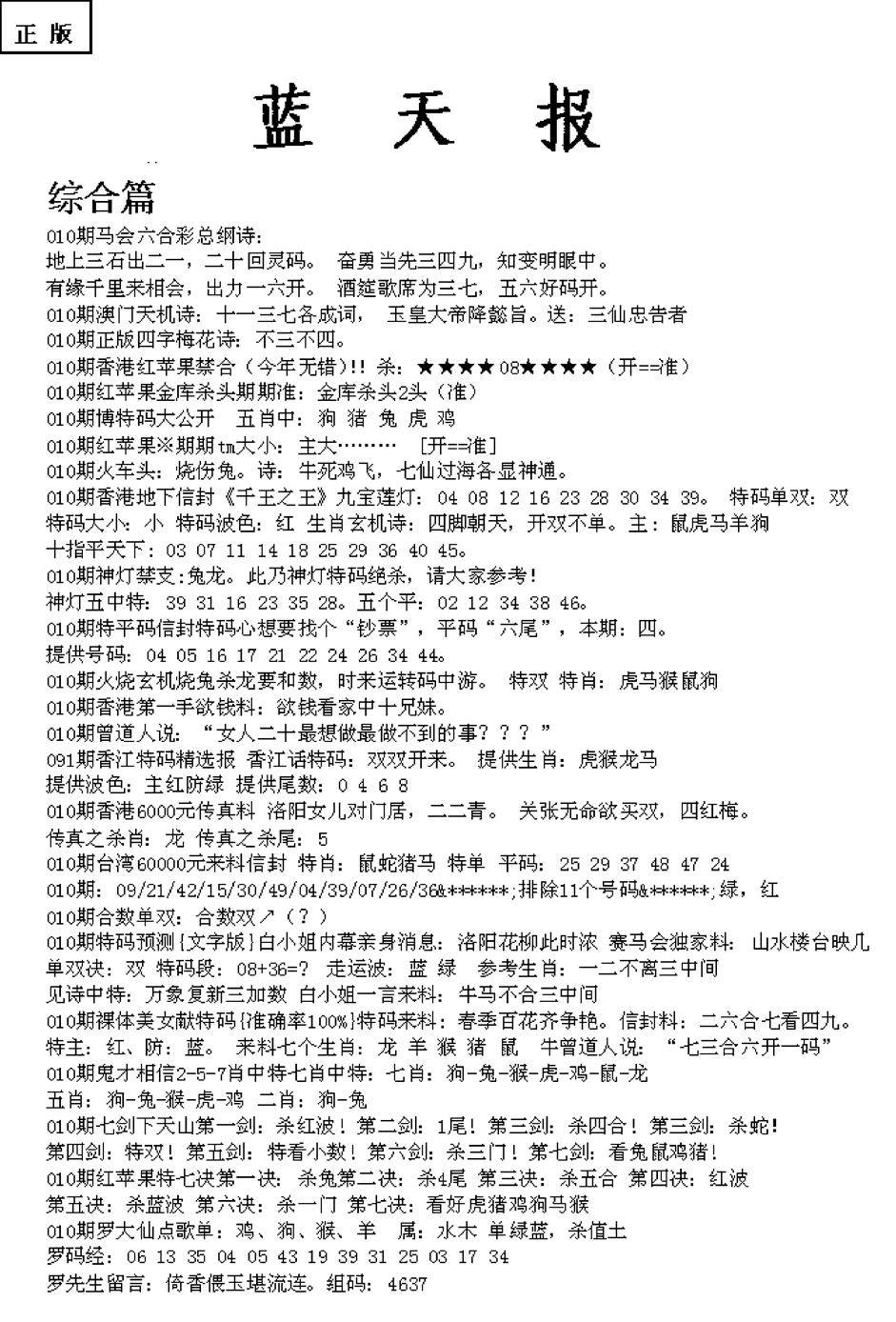 老版天机报