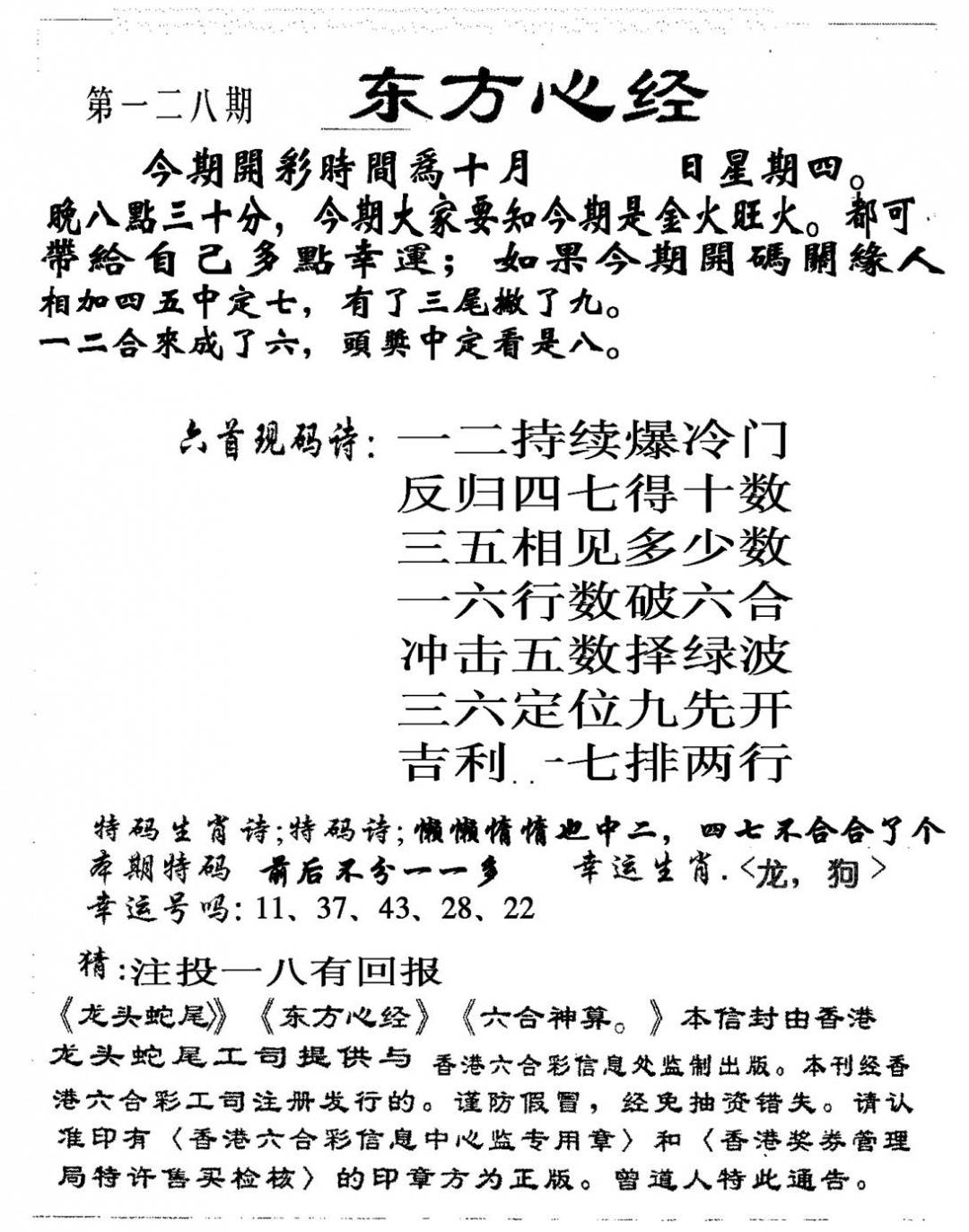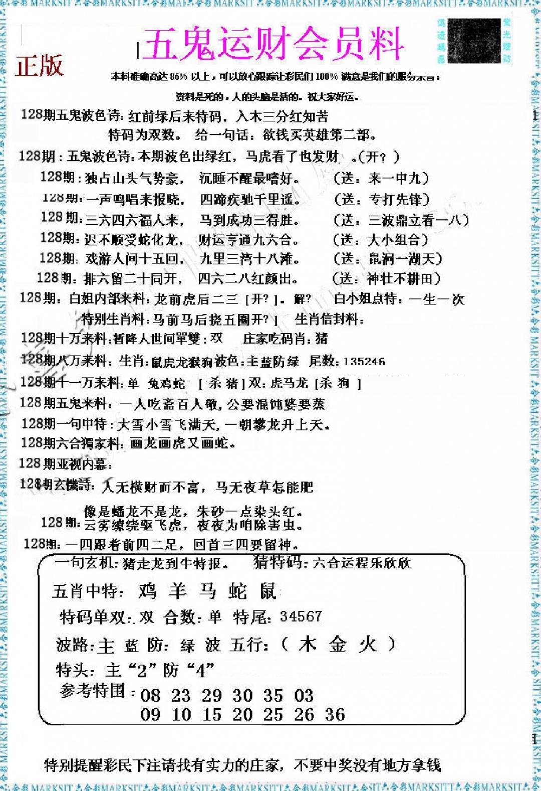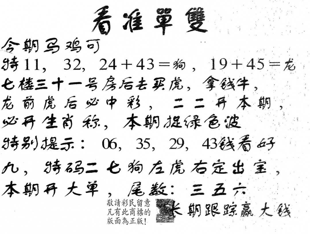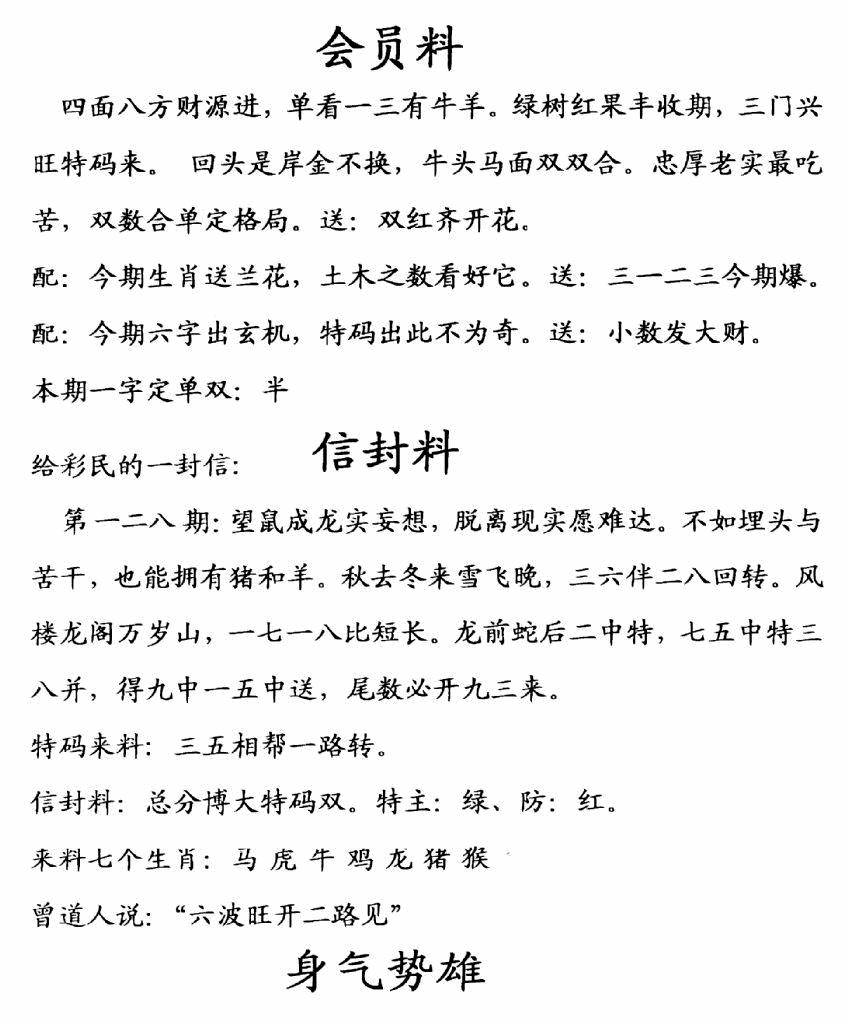(香港来料)马报