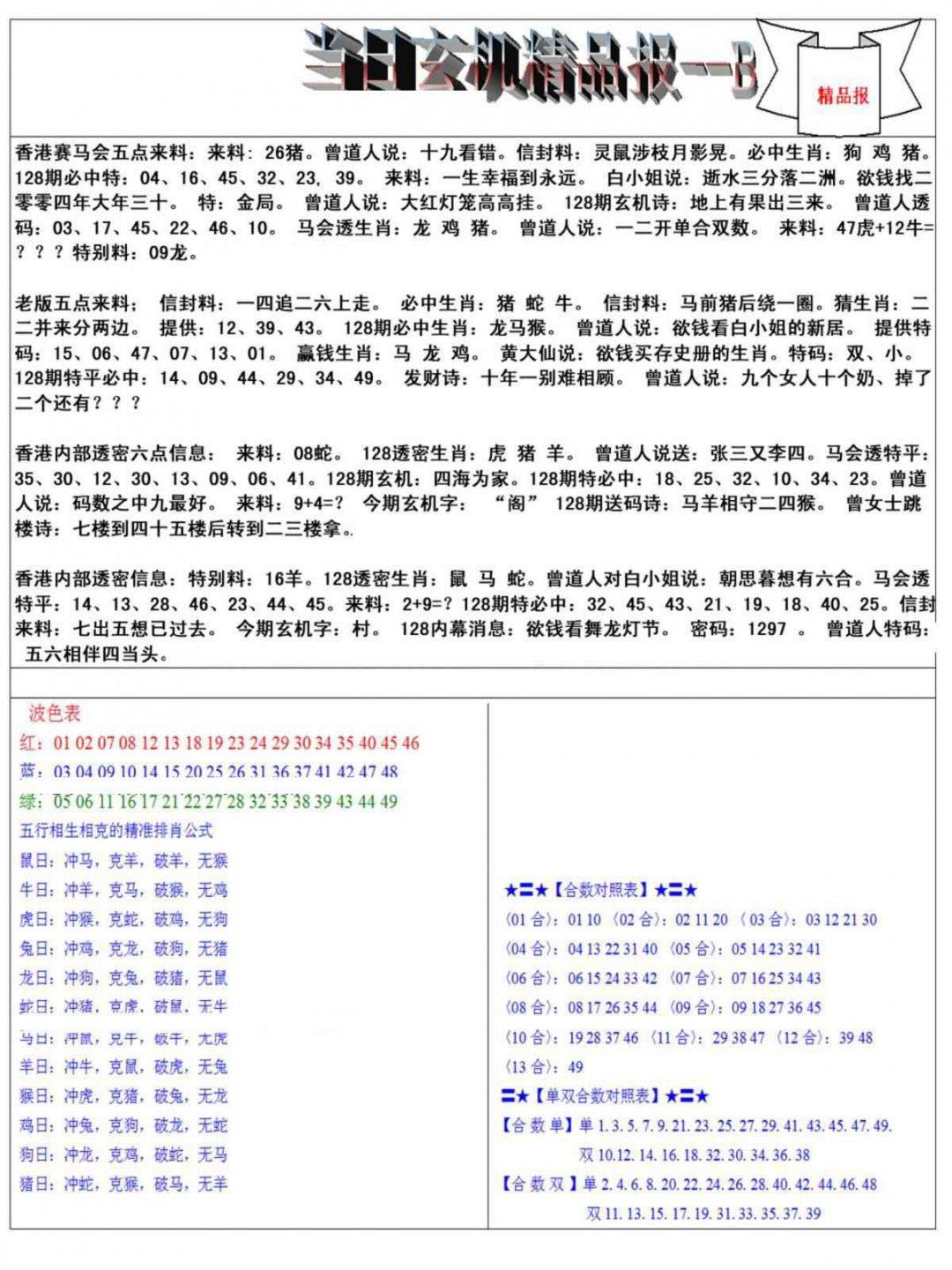 当日特码玄机B(新)