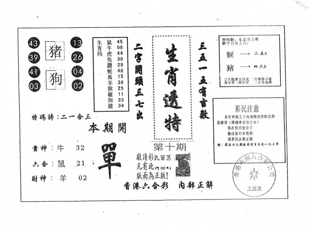 特肖秘籍