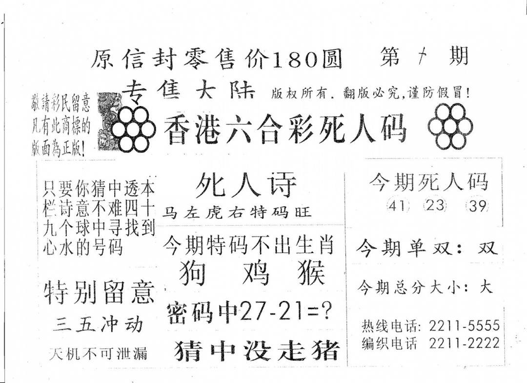 今日抓特码A(正版)
