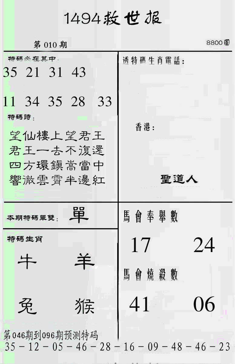 曾道人特码救世报B