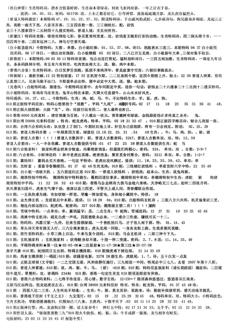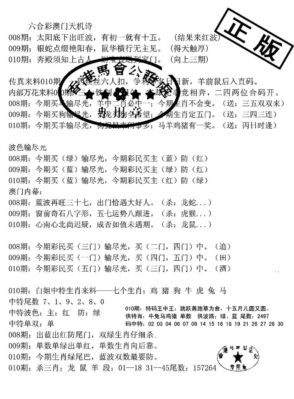 新版内部玄机A