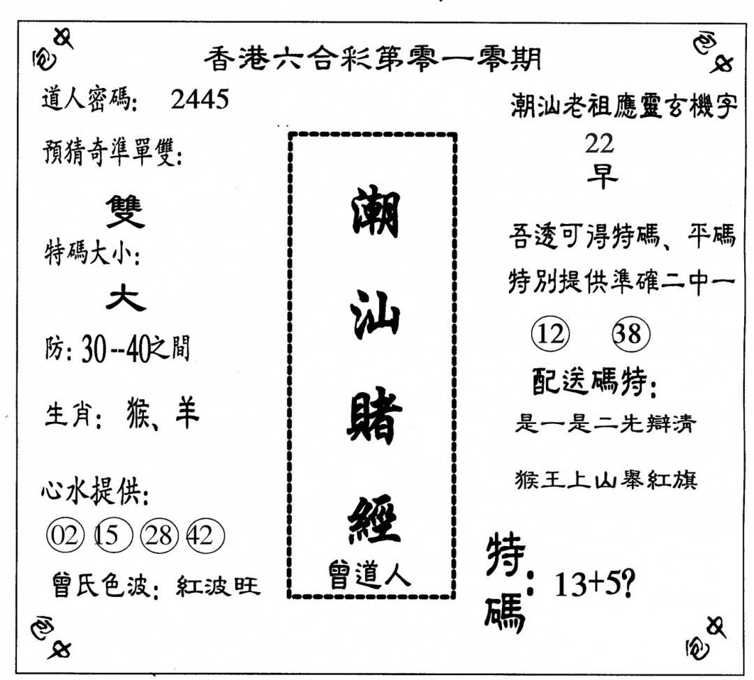 曾道人权威消息A