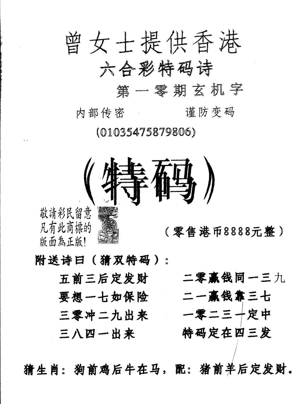 曾女士特码诗