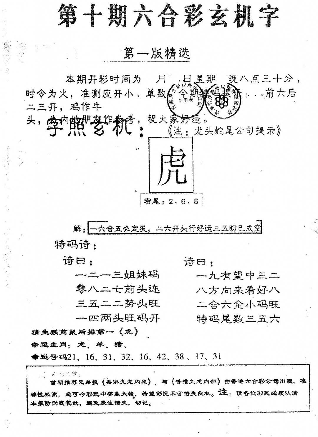 特码玄机字