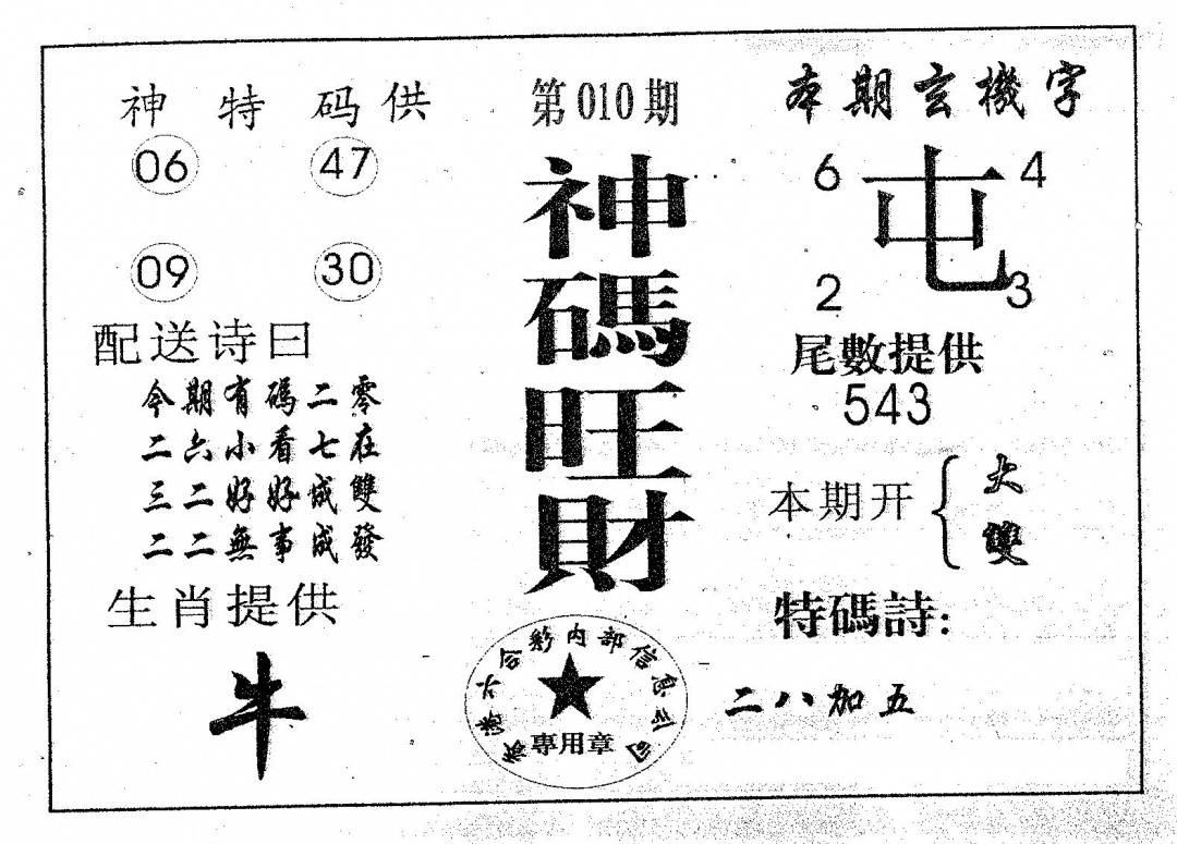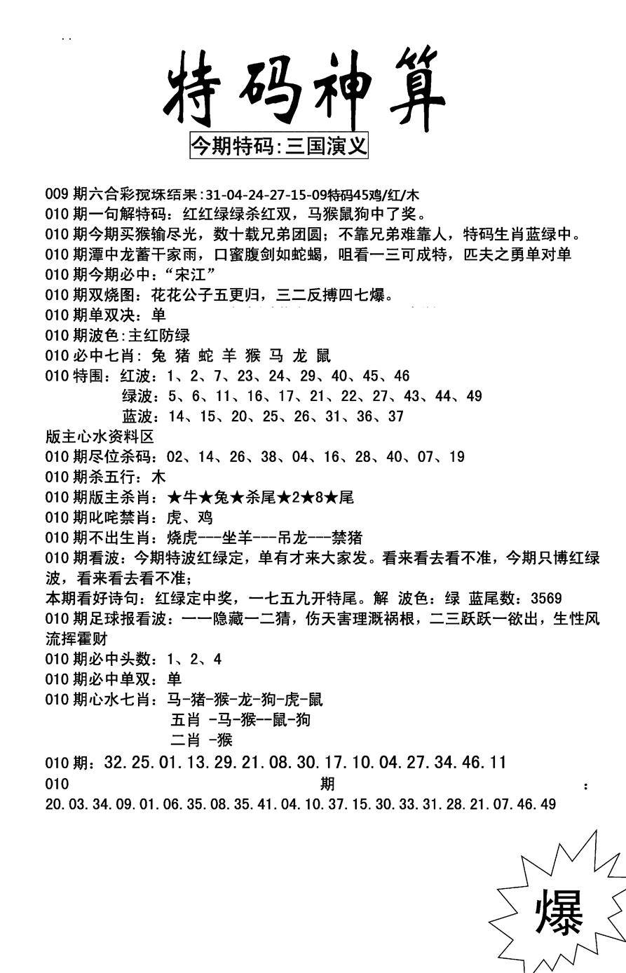 另版心水特码(早图)