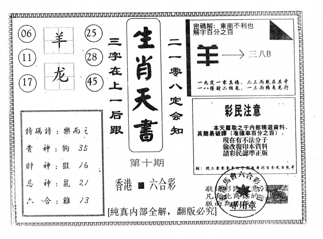 老幸运六合(信封)
