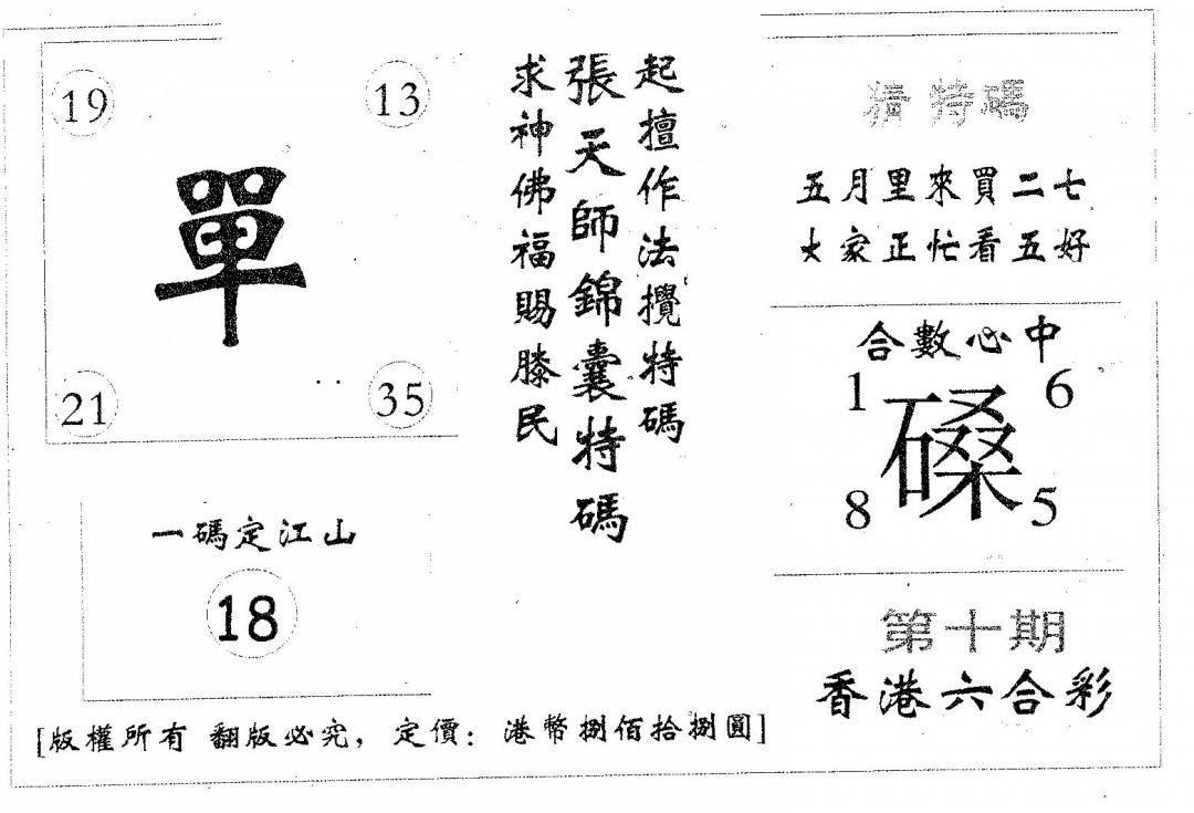 另版一心猜特码