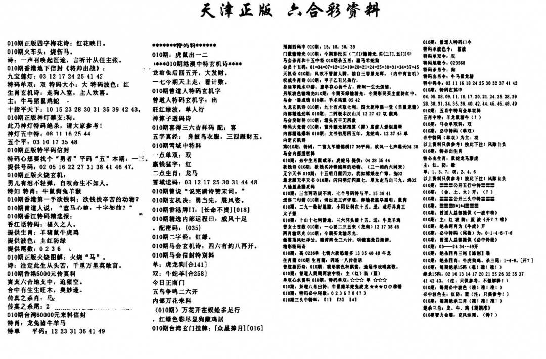 天津正版六合彩资料