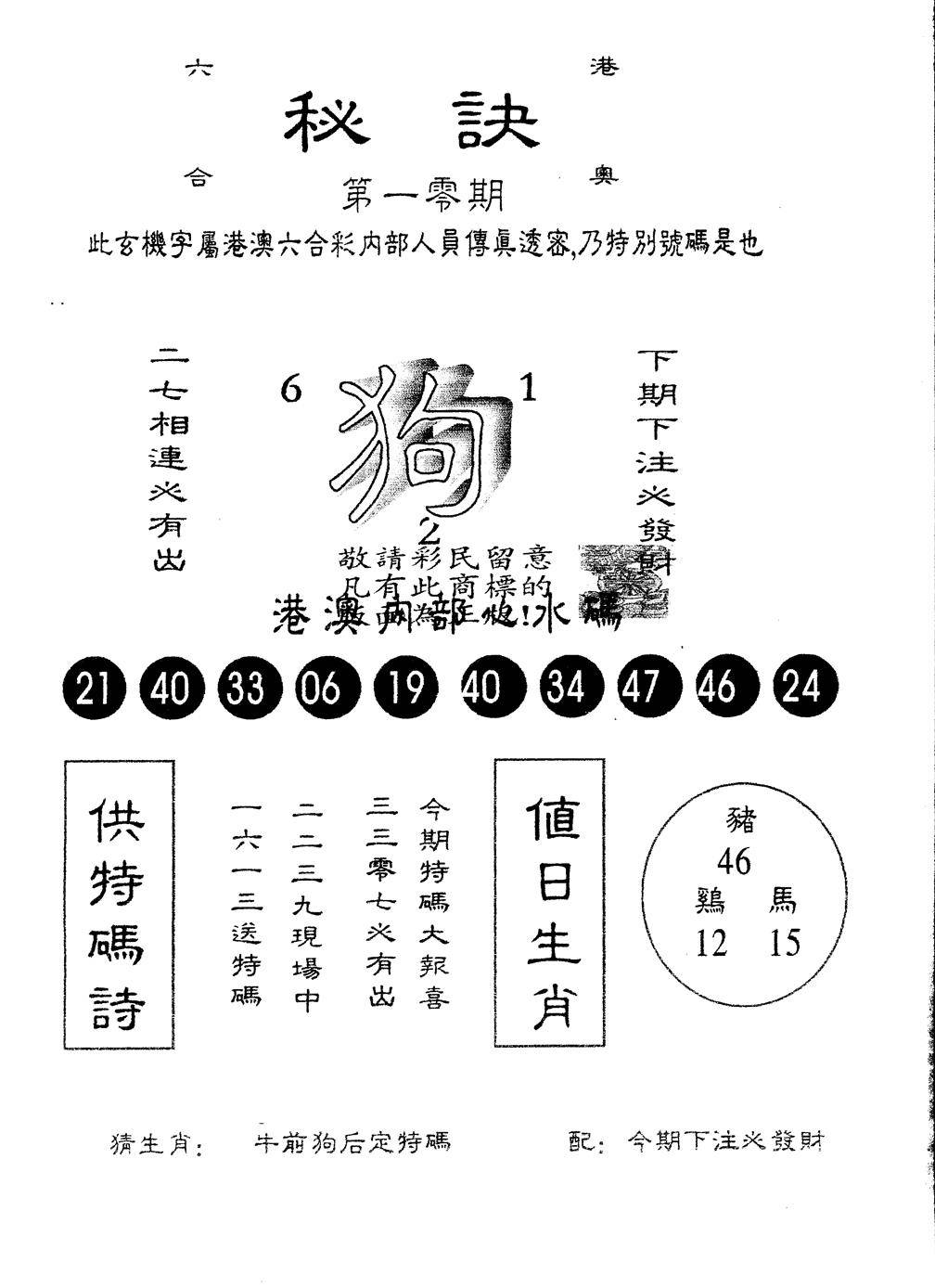 另版黄大仙灵码A
