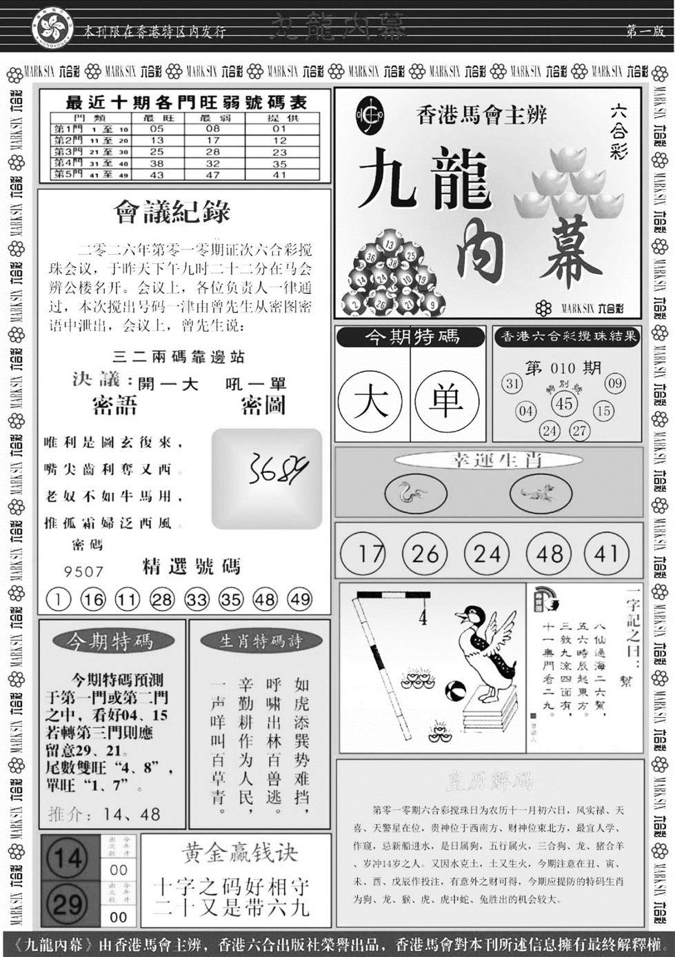 九龙内幕--开奖报
