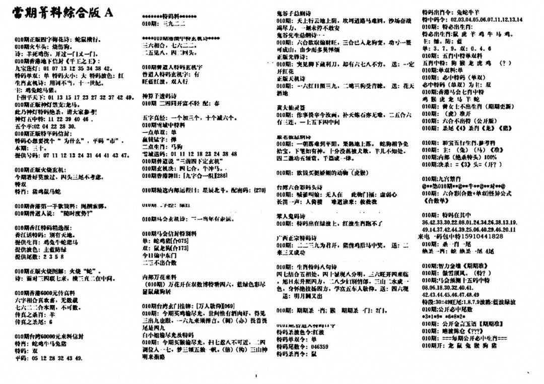 另版濠江神算A