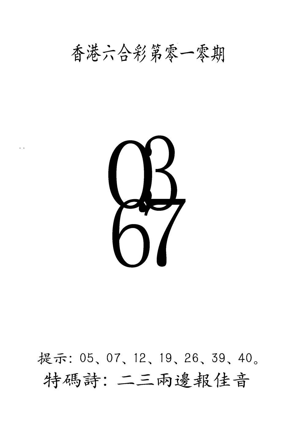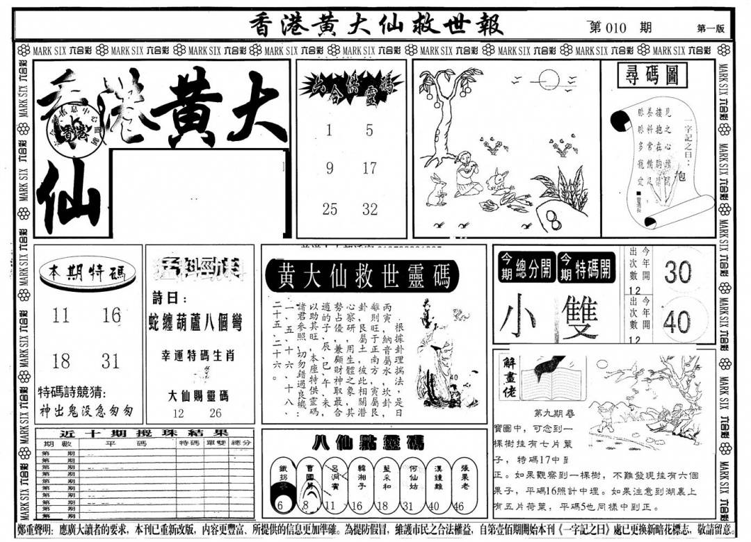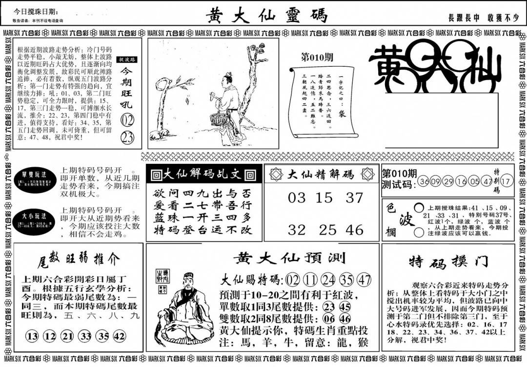 另版黄大仙灵码A