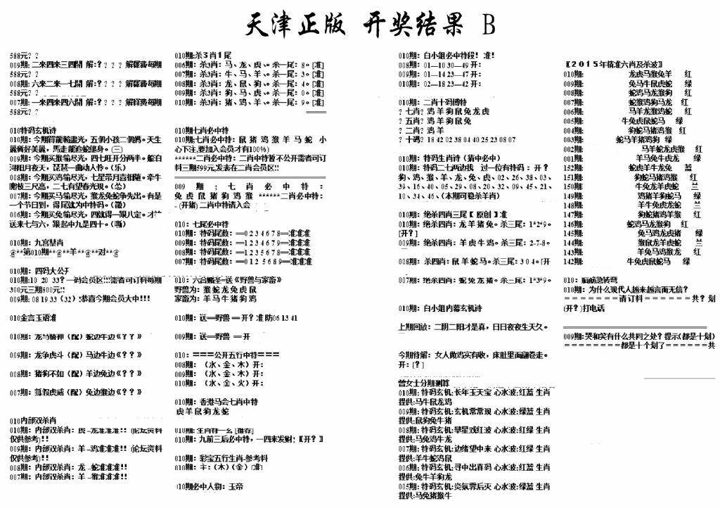 天津正版开奖结果B